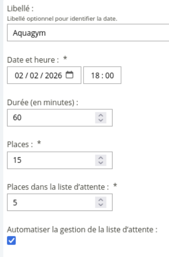 Sur chaque évènement, il est possible de configurer une liste d'attente avec un nombre de places défini. La gestion de la liste d'attente peut être manuelle ou automatisée.