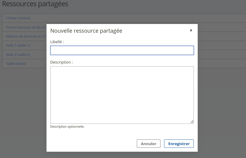 Les ressources partagées permettent de gérer la réservation d’équipements ou de moyens qui peuvent être partagés par plusieurs agendas de type Rendez-vous et Plages libres, par exemple : un vidéoprojecteur, une pieuvre téléphonique.