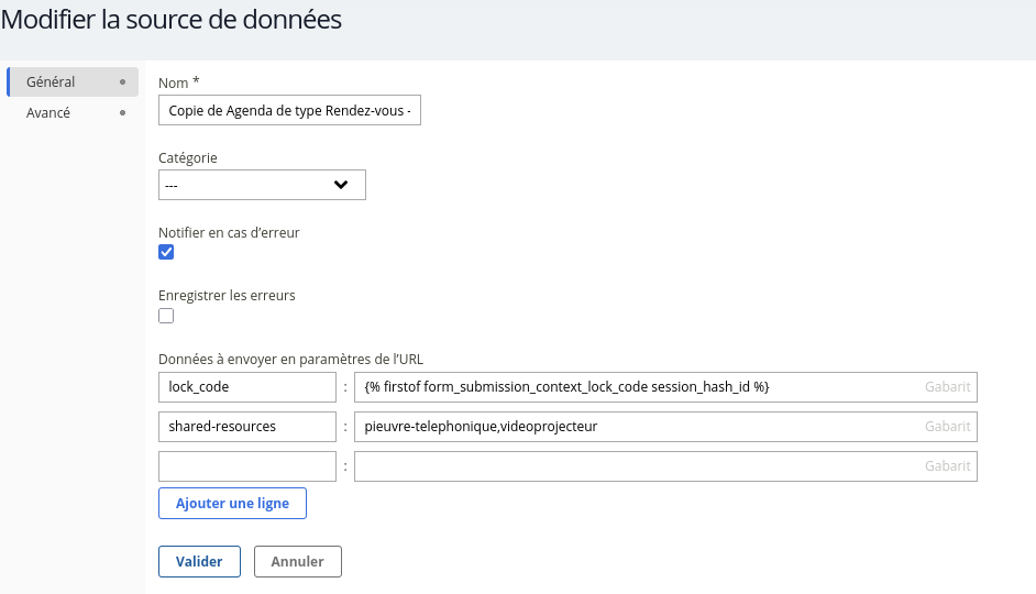 Cette source de données est ensuite utilisée dans le formulaire via un champ de type liste pour un agenda de type Rendez-vous ou via un champ de type Plage horaire pour un agenda de type Plages libres.