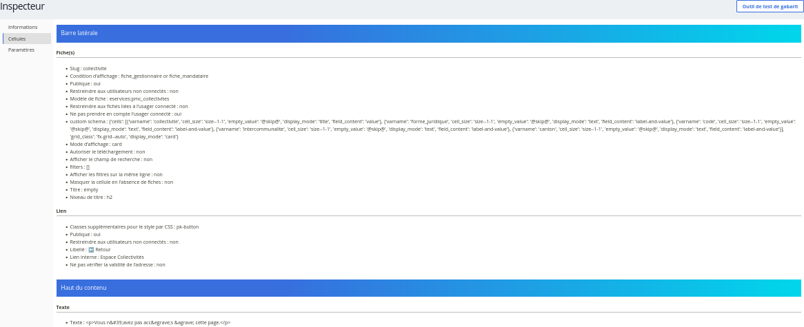 Depuis cette page, est accessible l'outil de test de gabarit.