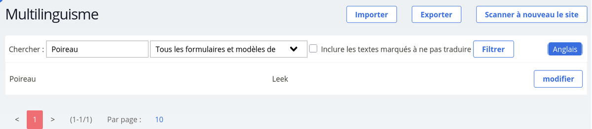 Lorsque vous créez un formulaire ou des fiches, cliquez sur le bouton « Scanner à nouveau le site » pour que le contenu apparaisse dans le tableau des éléments à traduire.