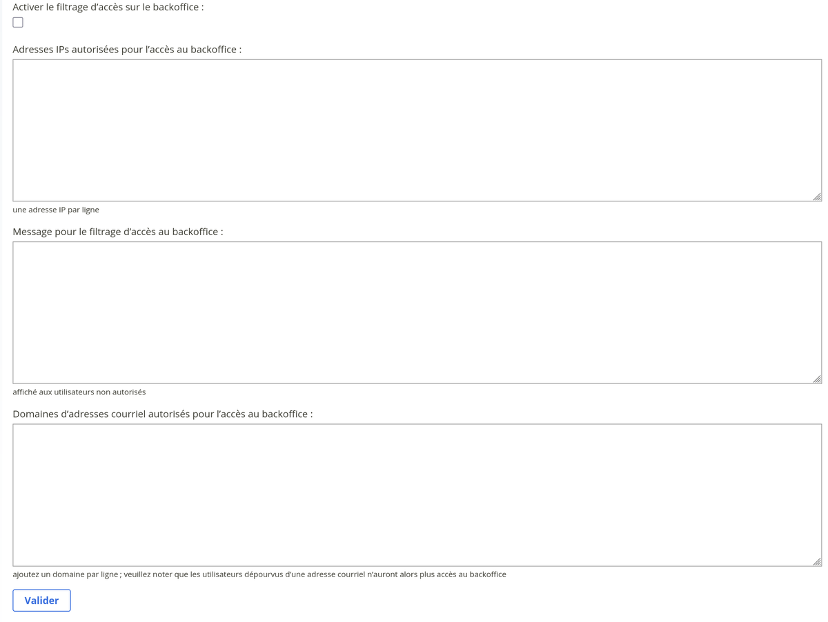 Activer le filtrage d’accès sur le backoffice