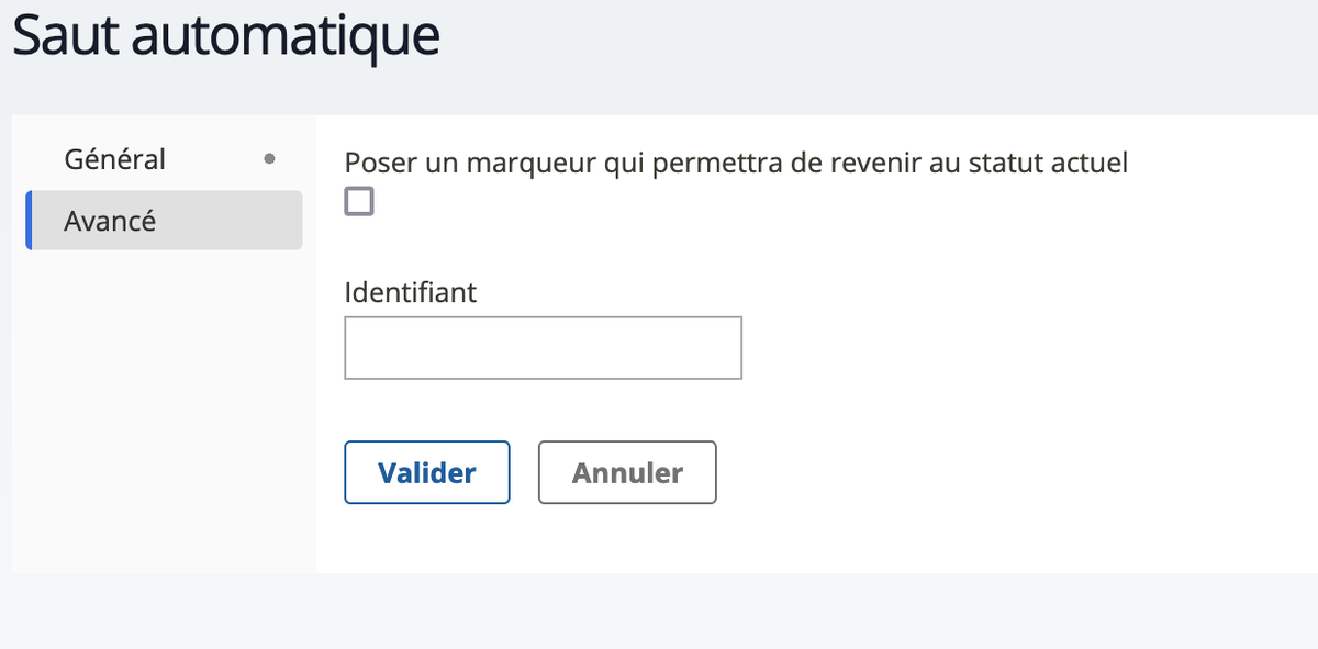 - Studio > Workflows : possibilité d'ajouter un identifiant sur un saut automatique (c'est déjà possible sur un saut manuel).