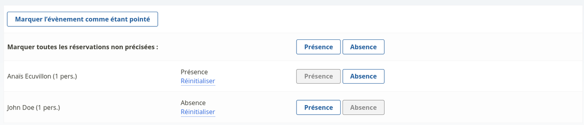 Le système de pointage permet de suivre la présence ou l'absence des personnes ayant effectué une réservation pour un évènement.