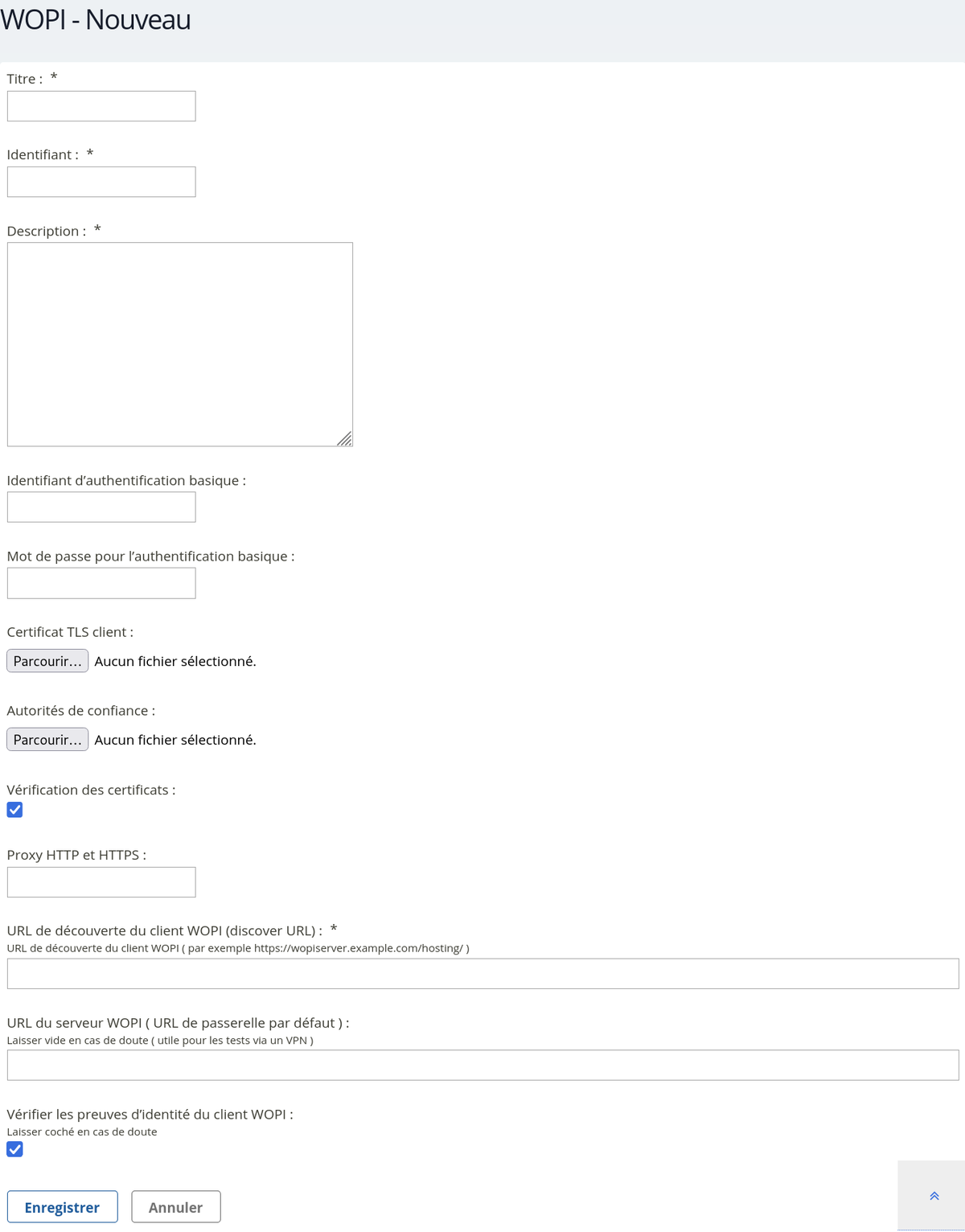 - URL du serveur WOPI ( URL de passerelle par défaut ) : laisser vide en cas de doute (utile pour les tests via un VPN)