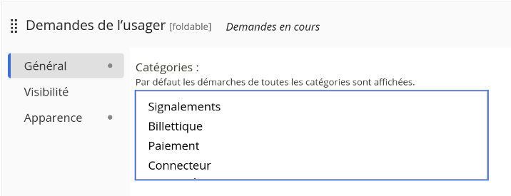 - Portail > Cellule Demandes de l'usager: affichage de toutes les catégories, même lorsqu’il n'y a pas de formulaire dans ladite catégorie ou qu'un formulaire est indiqué comme masqué Link: https://doc-publik.entrouvert.com/admin-fonctionnel/fabrique-formulaires/detail-formulaire/#publication .